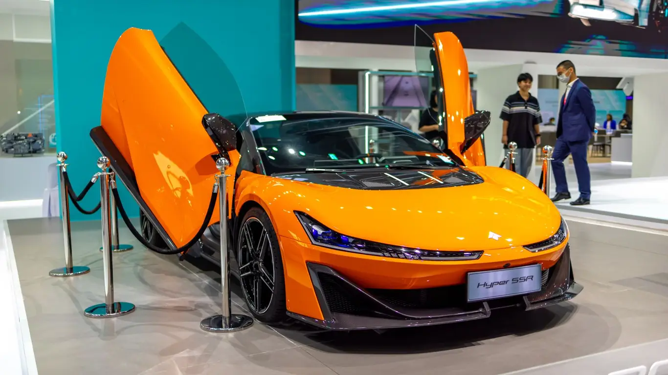 Hyper SSR — разработка китайского бренда GAC Aion. Под эффектным кузовом купе скрываются три электромотора с суммарной отдачей 1224 л.с. и 1230 Нм. Разгон до 100 км/ч занимает всего 1,9 секунды. Аккумулятор ёмкостью 74,7 кВт·ч обеспечивает запас хода до 506 км. Максимальная скорость ограничена на уровне 250 км/ч.