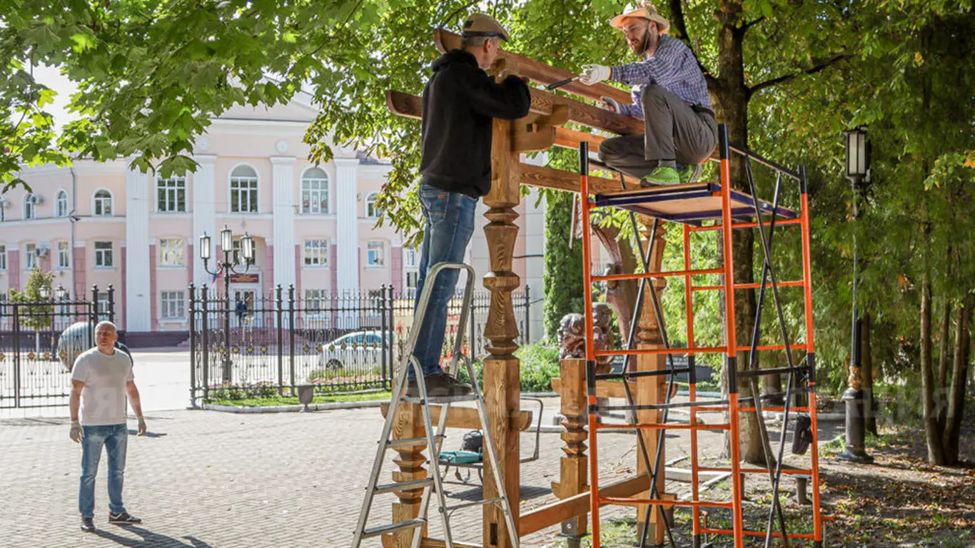 В парке имени Алексея Толстого в Брянске началась установка нового информационного стенда. Как и многие объекты парка-музея, он выполнен из резного дерева.