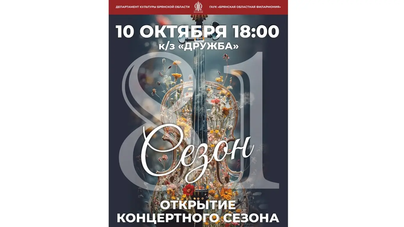 10 октября в 18:00 Брянская областная филармония откроет 81-й концертный сезон. Торжественное мероприятие пройдёт на сцене концертного зала «Дружба».В программе заявлены выступления всех солистов и коллективов филармонии. Зрителей ожидают разно жанровые музыкальные номера и специальные сюрпризы, подготовленные артистами. Организаторы обещают атмосферу, наполненную музыкой и творчеством.Возрастная категория мероприятия — 6+.