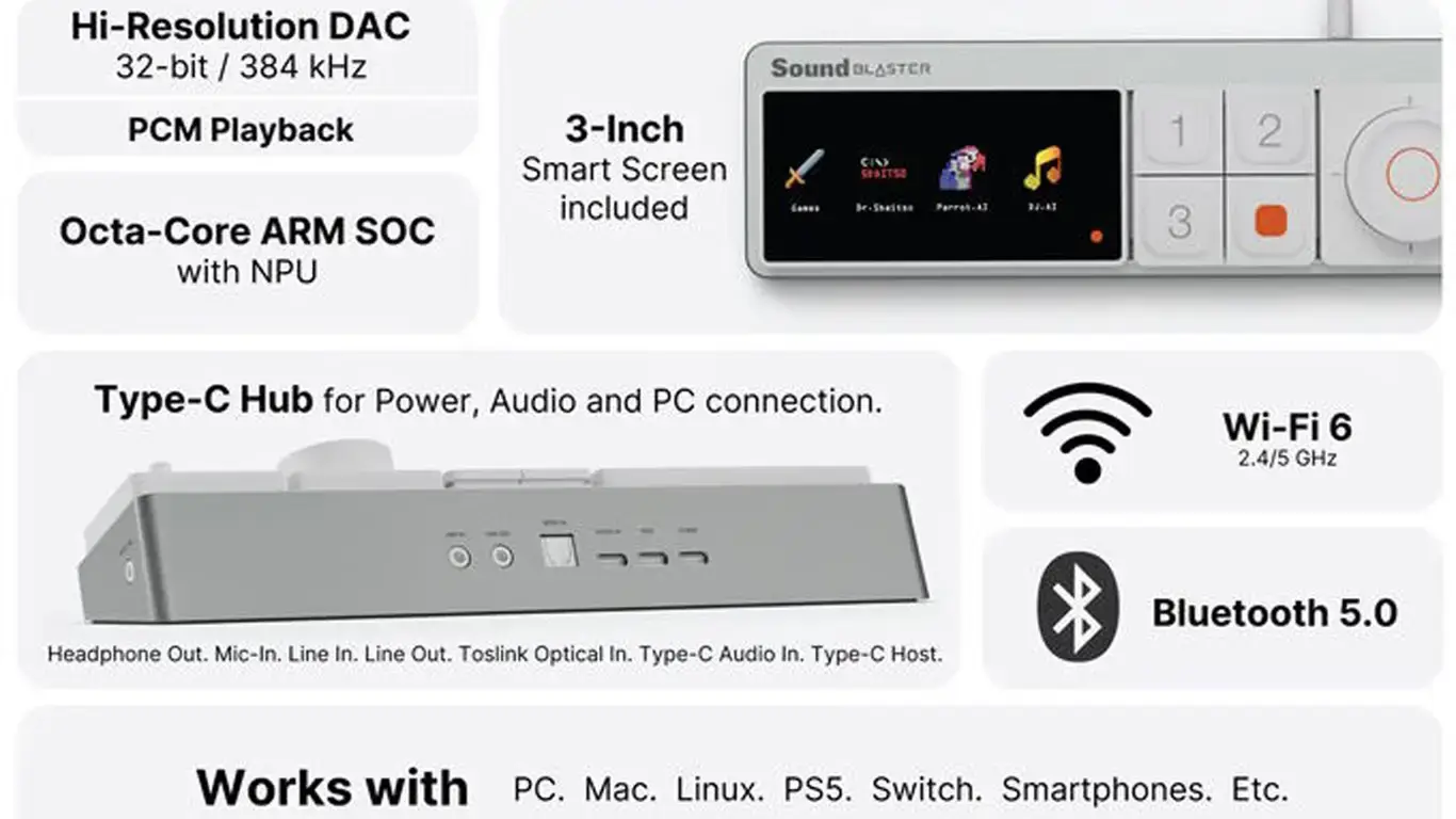 Компания Creative официально представила Sound Blaster Re:Imagine — инновационный модульный аудио-хаб нового поколения, сочетающий в себе функции высококлассного ЦАП, умного контроллера и USB-хаба с поддержкой Wi-Fi и Bluetooth. Устройство уже доступно для предварительного заказа на платформе Kickstarter, где собрало волну интереса со стороны профессионалов аудиоиндустрии и энтузиастов, пишет PEPELAC.NEWS.
