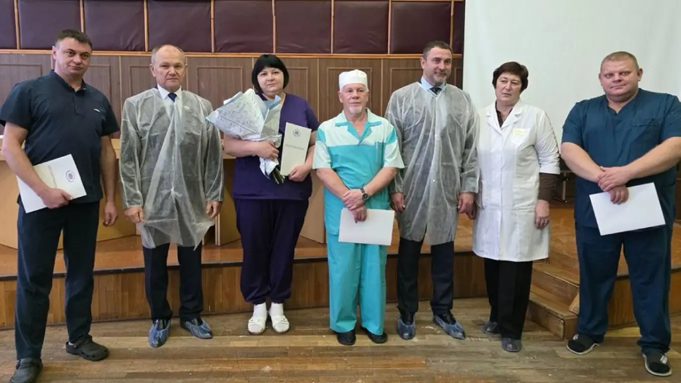 Почетными грамотами были награждены: врач-травматолог-ортопед Дмитрий Шатунов, врач-травматолог-ортопед Александр Баранов, врач-анестезиолог-реаниматолог Николай Долгов и операционная медицинская сестра Наталья Акулова.