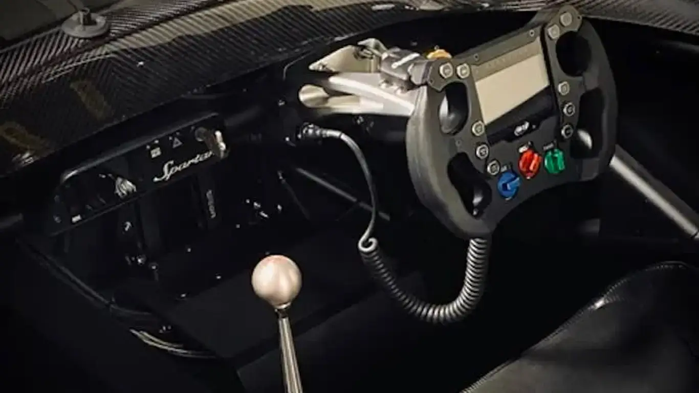 Интерьер утилитарен до костей: карбоновые ковши Tillet, шеститочечные ремни, минималистичная приборка. Расположение руля можно изменить за считаные минуты — симметричная конструкция это позволяет. За безопасность отвечает каркас, соответствующий нормам FIA, и это логично для такого темпа.