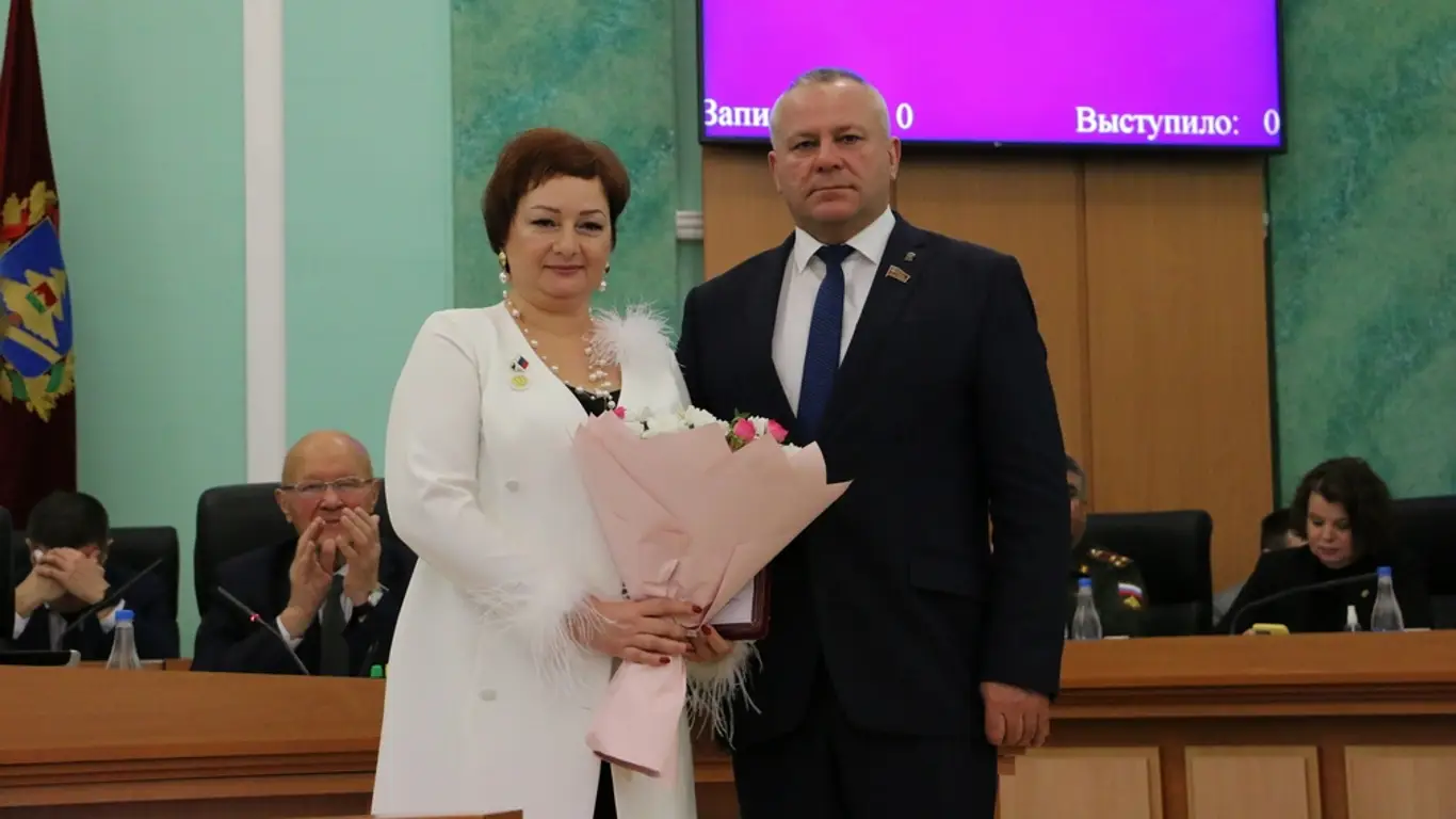 На заседании Брянской областной Думы 23 декабря 2025 года прошло торжественное вручение удостоверений и нагрудных знаков в связи с присвоением почётного звания «Заслуженный работник образования Брянской области». Награды вручены за многолетний вклад в педагогическую и воспитательную деятельность, а также за работу по развитию знаний и творческого потенциала обучающихся.