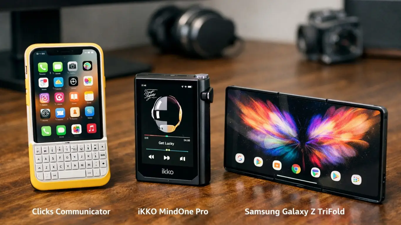 Другой необычной новинкой стал Ikko MindOne Pro — компактный смартфон на Android с квадратным корпусом и 4-дюймовым экраном. Устройство оснащено поворотной 50-мегапиксельной камерой, которая также может использоваться как подставка. Для компании Ikko, ранее выпускавшей в основном аудиотехнику, смартфон стал экспериментом. При этом обсуждаются вопросы долгосрочной программной поддержки и конфиденциальности, так как базовая версия использует фирменную операционную систему с AI-функциями. Покупателям также предложена версия с чистым Android.