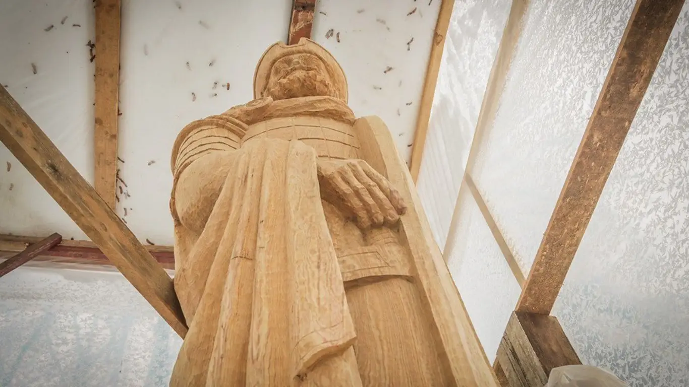 В 2026 году парк имени Алексея Толстого в Брянске отметит 90-летие. В течение юбилейного года здесь запланирован ряд праздничных мероприятий, а одной из новых точек притяжения станет скульптура князя Романа Брянского.Деревянный монумент создаёт скульптор Андрей Вишневский. Работы начались осенью прошлого года и сейчас близки к завершению. Пока скульптура находится на рабочей площадке неподалёку от летней эстрады и укрыта защитной конструкцией от осадков. После наступления тёплой погоды изделие из дуба обработают специальным составом, который защитит древесину от разрушения, затем установят на бетонный фундамент. Открытие скульптуры планируется весной.Параллельно в парке продолжаются и другие работы по обновлению территории. В зимний период начался ремонт крыши деревянного домика рядом со скульптурами бегемота и цапли. Повреждённые элементы демонтированы, а новые детали изготовлены в мастерской. Монтаж завершат после потепления.Кроме того, к началу весенне-летнего сезона у летней эстрады планируют установить около двадцати новых скамеек со спинками. Их также изготавливают сотрудники парка. Новые лавки будут выполнены в стилистике, сочетающей элементы традиционного оформления и лаконичные формы.