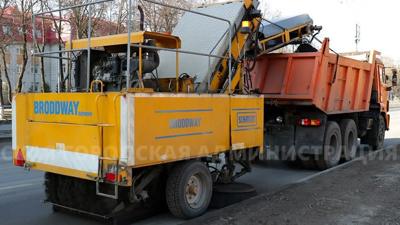 На городские магистрали вышли машины «Бродвей», которые убирают грязь и песок. Сегодня такая техника задействована на Московском проспекте, проспекте Героев, а также на улицах Пушкина и Никитина.