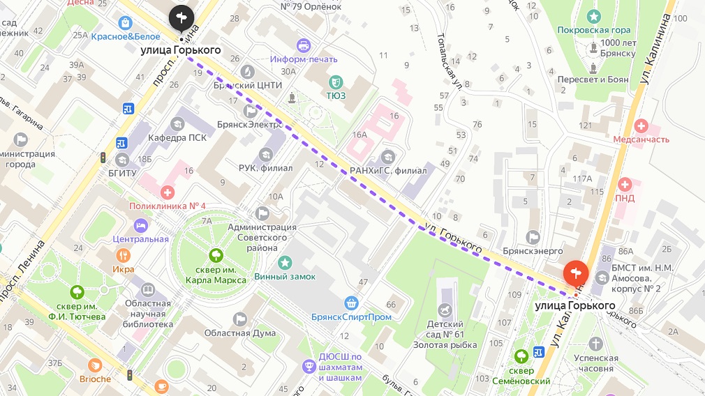 От трёх до пяти полос: как в Брянске планируют расширить улицу Горького
