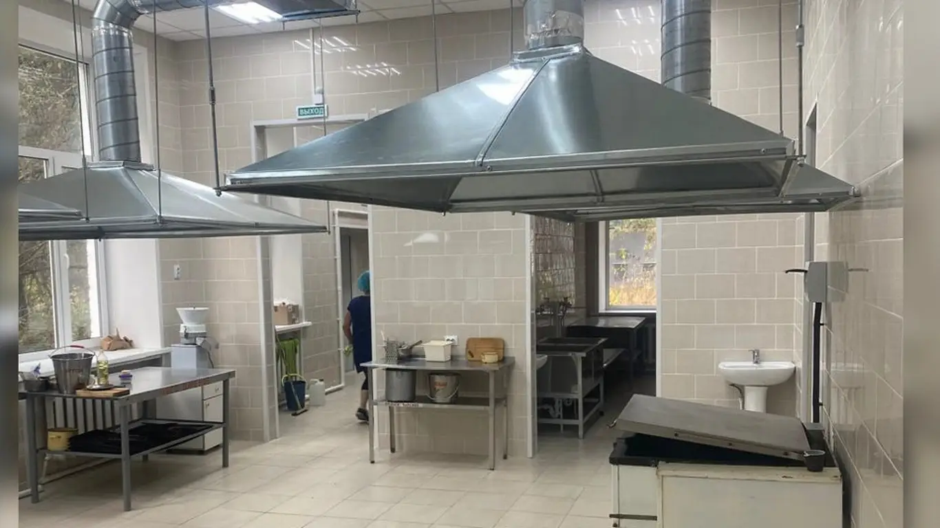 Также были заменены двери, сантехническое оборудование и покрытия полов, стен и потолков. Отремонтирована кровля и обустроены специализированные цеха: мясной, салатный, варочный, овощной, а также для приготовления горячих и холодных блюд.