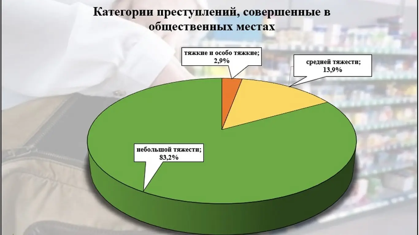 За 2024 год на территории Брянской области было зарегистрировано 4326 преступлений, совершенных в общественных местах. Этот показатель вырос на 4,9% по сравнению с предыдущим годом. Большая часть преступлений (71,4%) произошла в областном центре.По данным правоохранительных органов, в структуре преступности преобладают преступления небольшой тяжести, которые составляют 83,2% от общего числа. Наиболее распространенные виды преступлений — кражи, умышленное причинение вреда здоровью средней тяжести, грабежи и угрозы убийством. На улицах, площадях, в парках и скверах Брянской области было совершено 1060 преступлений.В ходе оперативно-следственных мероприятий раскрыто 3105 преступлений, из которых 2578 совершены лицами без постоянного источника дохода, 2550 — ранее судимыми, а 466 — в состоянии алкогольного опьянения. Правоохранительные органы продолжают работу по обеспечению безопасности граждан и усилению контроля за криминогенной обстановкой в общественных местах.