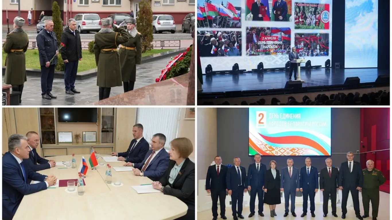2 апреля Россия и Беларусь отметили День единения народов. Делегация Брянской области приняла участие в торжественных мероприятиях, прошедших в городе Гомеле. В состав делегации вошли врио заместителя губернатора региона Виталий Свинцов и заместитель председателя Брянской областной Думы Николай Якушенко.В рамках визита представители Брянщины почтили память героев Великой Отечественной войны. У братской могилы советских воинов и подпольщиков участники делегации возложили цветы и отдали дань уважения погибшим.Также прошла рабочая встреча с председателем Гомельского облисполкома Иваном Крупко и председателем областного Совета депутатов Екатериной Зенкевич. Стороны обсудили вопросы развития деловых, культурных и молодежных связей между регионами. Завершили программу праздничные мероприятия с участием творческих коллективов из России и Беларуси. Основной темой концерта стало единство двух славянских народов.